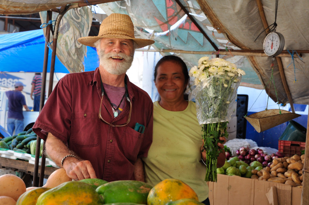 An interesting analysis of Yuscarán’s texts can also be found on the pages of A Year of Reading the World (http://ayearofreadingtheworld.com/tag/guillermo-yuscaran/), an internet book blog kept by “London Choir Girl”. She states that “Yuscarán’s direct and often apparently simple style is well-suited to telling the stories of characters who are thwarted by life.” Related to the above and as illustrated by the fifth photo below, Guillermo Yuscarán is a common sight in the marketplaces of Honduras. In this case, he was listening to the stories of a lady who survives by selling fruit, vegetables and flowers in the market of Tela.